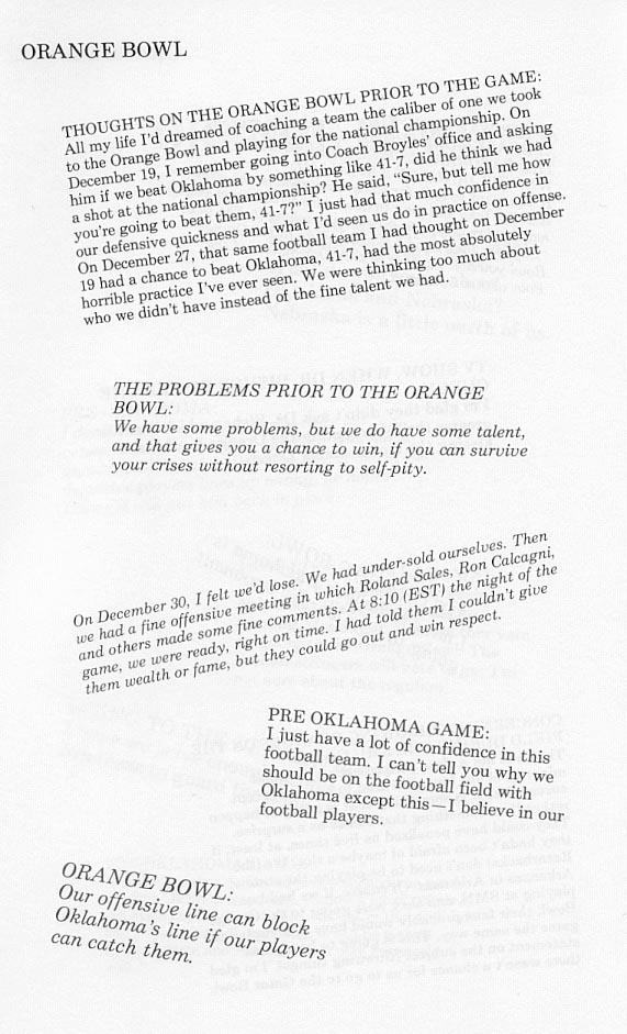 Coach Holtz' beliefs and comments could not have been enjoyed