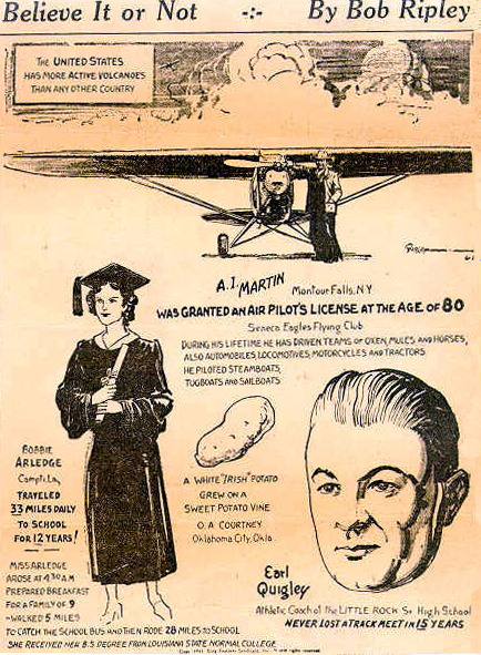 Our own Earl F. Quigley, Athletic Director of Little Rock Senior High School (1916-1955), made the Ripley's Believe It or Not, for his outstanding track teams he coached at Little Rock Senior High School.